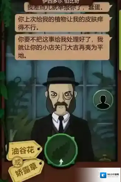 4、若选择了娇露草,在第五天,伊西多尔伯比奇会第三次来访,并威胁要举报玩家。这时,又一个分支选择出现。