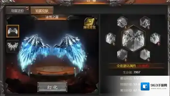 3、羽翼皮肤,可收集皮肤碎片,激活对应的羽翼皮肤,激活成功后获得相应的属性加成。如获得相同碎片,可升级同部位碎片属性。