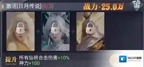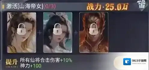 战力:250000、提升:所有仙将合击伤害+10%,神力+100。