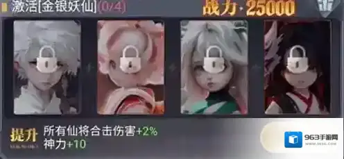 战力:25000、提升:所有仙将合击伤害+2%,神力+10。