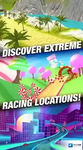 3、简单的游戏绘画风格,卡通抽象人物和地图场景,搭配上独特的玩法设计,感受赛车带来的极致快感。