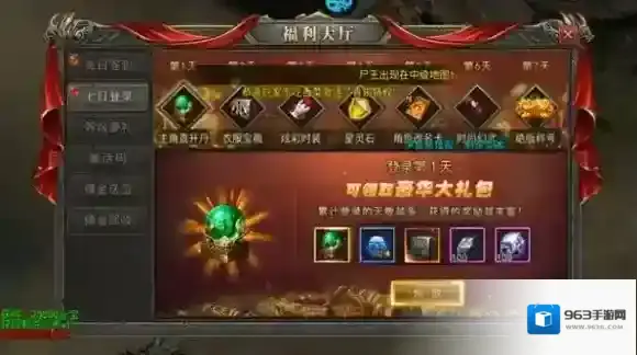 4、每日登录可领取豪华大礼包,累计登录的天数越多,获得的奖励越丰富。