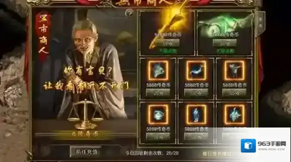 通过黑市商人回收装备,获取传奇币,这些传奇币可用于与战力提升相关的消耗。