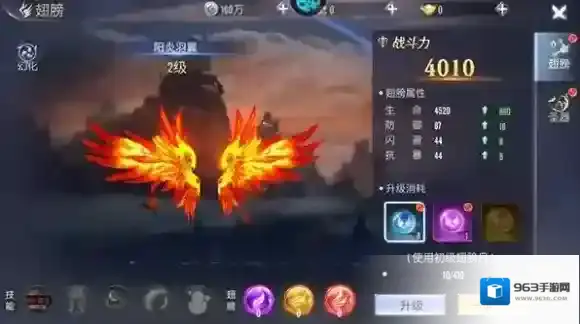 2、翅膀系统:酷炫翅膀外观,海量战力提升。