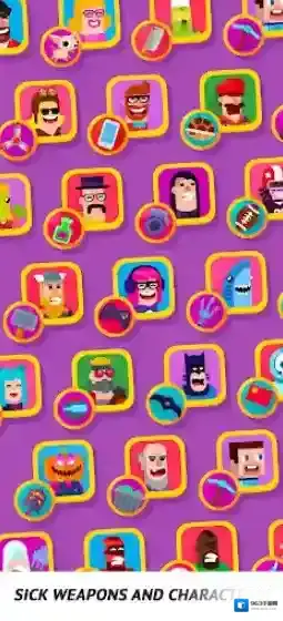 游戏中,我们需要通过拖动屏幕来控制角色投掷的角度和力度,瞄准好敌人进行射击,利用角色独特的武器去击中对手,造成不俗的伤害!不断的去消灭对手来赢下比赛,获得丰富的奖励,解锁更多有意思的角色和模式,体验更加丰富的内容!
