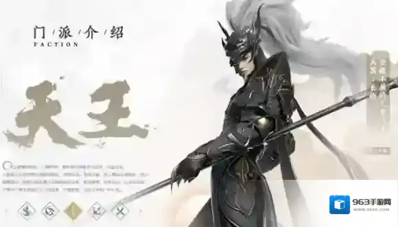 天王是一个近战高防的门派,技能属性偏向攻高防厚,单体爆发不足,所以天王比较适合参加团战,在团战中处于坦克前排的位置,高抗性使得他能扛能打,拖延敌方。