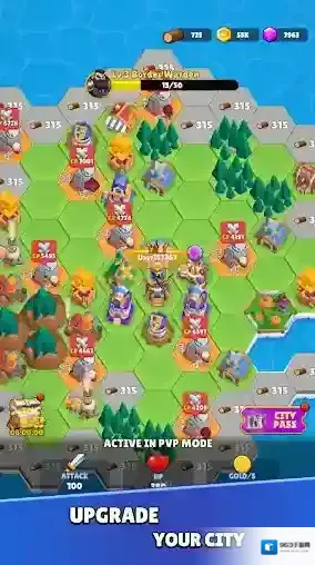 2、在战场中随机翻转土地,召唤出各种传奇英雄进行战斗,庞大兵营同时出兵,用潮水般的大军进攻敌人领地,将它们全部占领!