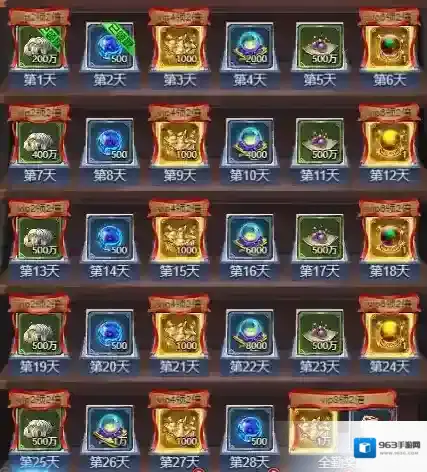 每日登录,根据登录天数领取各式奖励,VIP用户更能得到双倍福利。登陆30天后,即可收获50万宝石、1000令牌和5000万银两的丰盛奖励,助你在江湖中蓄力飞跃!