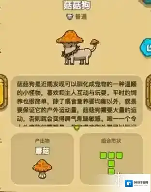 菇菇狗:温顺的小怪物,可驯化为宠物,喜欢与主人互动玩耍。