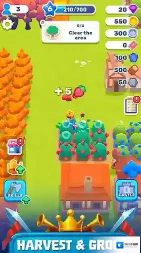 皇家领地(Royal Lands),一款中世纪风格的王国建设类模拟经营游戏。完美的融合了放置经营和策略冒险玩法,带给玩家们更加丰富有趣的游戏体验!一开始你只是一个势单力薄的光杆司令,只有利用手中这把斧头来砍出一片天,收集物资、战胜怪物以获取足够的资源,然后建造王国并吸纳更多的人民,一步步的将自己的王国变得更加强盛!同时,还需要建造足够强大的防御,防止周围入侵的其他王国,守卫自己的领地!