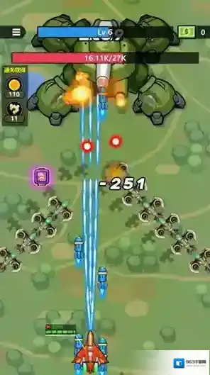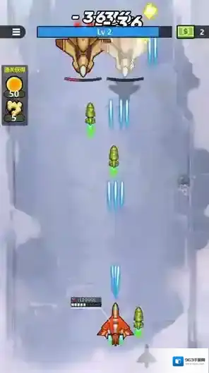 3、开始战斗后飞机会自动发射不同的子弹进行攻击,玩家要做的就是滑动屏幕控制飞机移动。