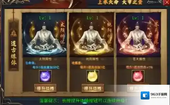 提升太阴、纯阳、苍天等属性体魄,能分别增加生命、攻击、防御等属性。