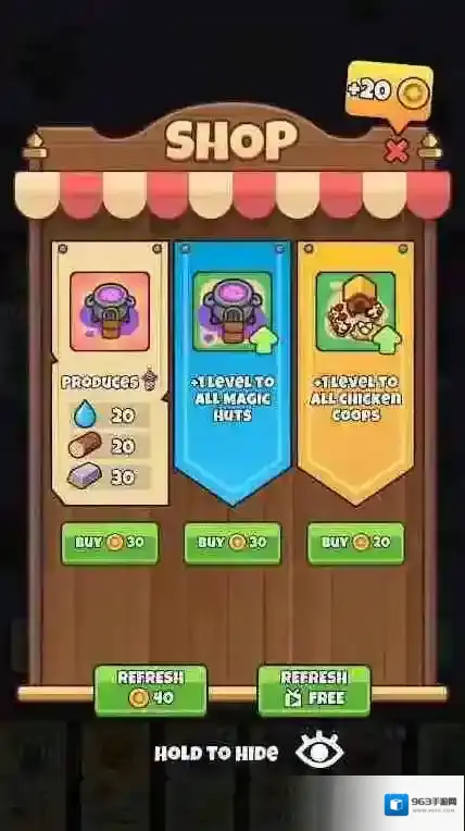 5、当玩家击败一波敌人后可以进入商店,在商店里你可以购买不同的建筑和强化效果。