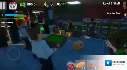 2、不断的解锁升级更多内容,并拓展你的超市规模,增加更多货架和商品种类,让顾客有更多选择。