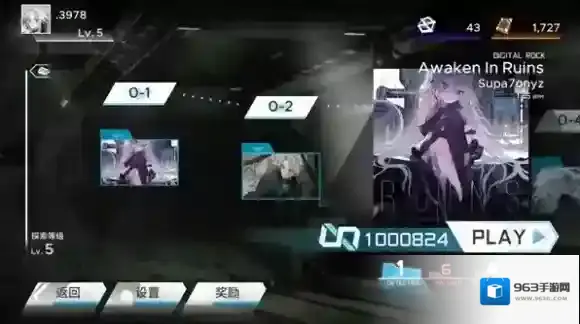 1、开启范式起源,进入游戏界面如图所示,玩家能够自由挑选曲目与难度来展开挑战