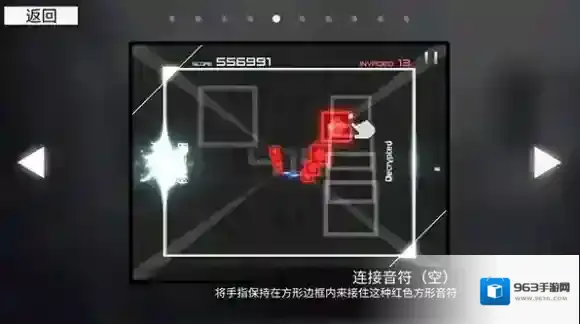 将手指保持在方形边框内来接住这种红色方形音符