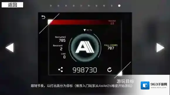 跟随节奏,以打出高分为目标(推荐入门玩家从AWAKEN难度开始游玩)