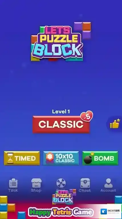 1、点击CLASSIC模式按钮开始游戏,消耗5点体力进行方块消除挑战。