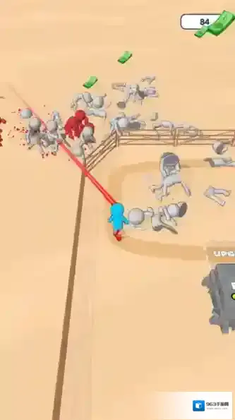 2、蓝色小人遇红色敌人,通过点击、滑动等操作,与敌人战斗对决。
