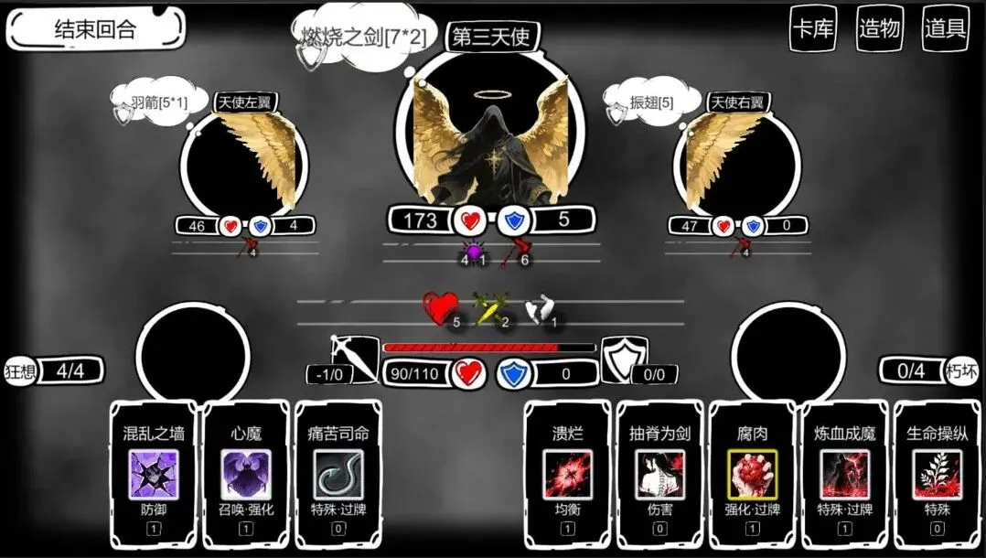于夕卡组核心思路是用癫狂叠兴奋层数,提高输出,通过虚妄之礼无限刷癫狂。