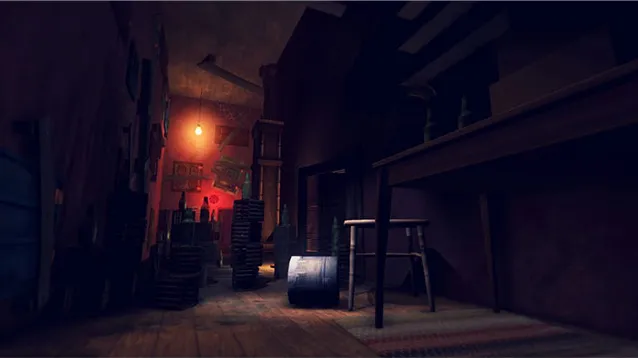 4.解谜与探索结合,例如用苹果打碎吊着钥匙的玻璃瓶、跟随地面青色印记逃离迷宫般的衣柜,谜题融入环境设计