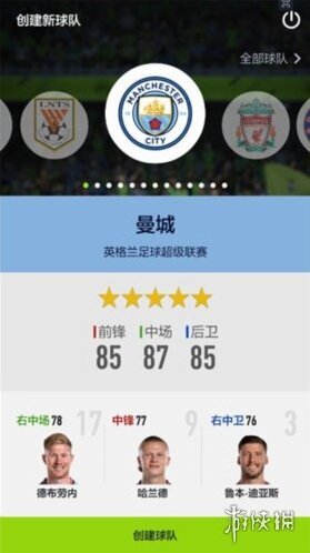 3、之后就可以进行最关键的球队创建了,不同的球队所携带的球员也是不同的,能参与的比赛在前期也是不一样的,选定后点击下方的创建球队即可。