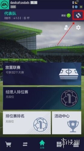 4、在游戏主页中,点击右上角的图标可以进行球队切换,分别是你创建的球队和代表对。