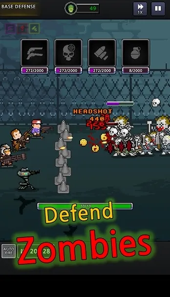 2.融合放置玩法与动作射击,通过点击操作即可指挥角色对抗丧尸