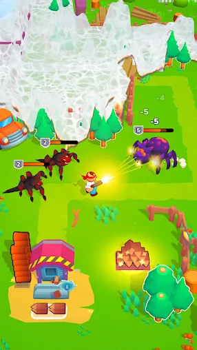 1、拿起武器消灭出现的各种蜘蛛,解救出现的幸存者,为你提供宝贵的奖励和升级机会。