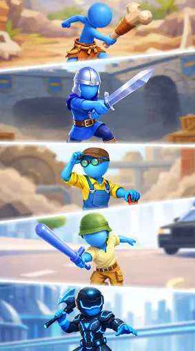 2、穿越时空的旅程:花费金钱解锁并在五个不同的历史时代中进化你的角色。