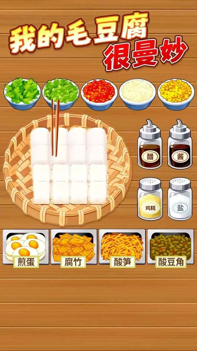 题材新颖,贴合潮流:直接取材于网络上热门的“霉豆腐”美食视频,将一种视觉独特的地方小吃转化为游戏主题,满足了玩家的好奇心和体验欲。