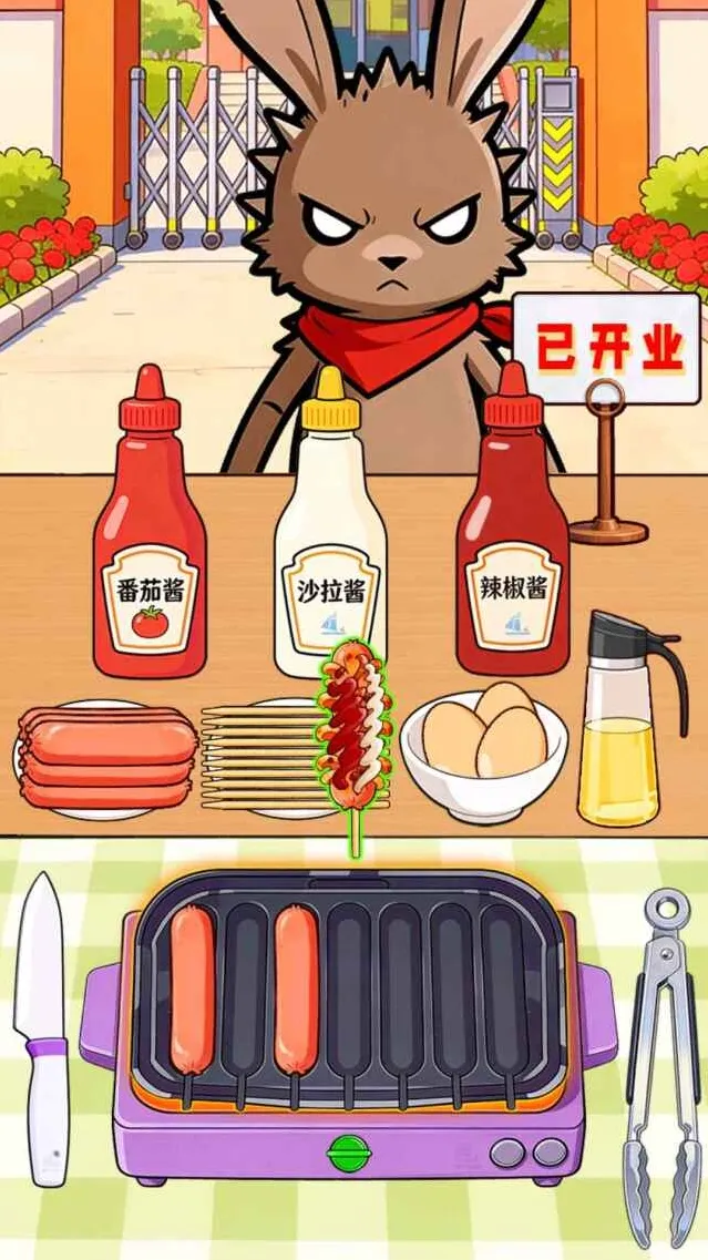 在后续关卡(如烤肠摊)中,会加入全新的食材和工具。