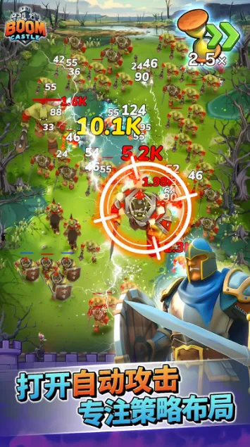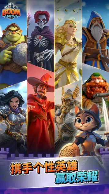 爆炸城堡(Boom Castle),一款令人热血沸腾的肉鸽类策略放置塔防手游。玩家们将作为王国的勇士,在城墙前操控大炮抵御入侵的敌军浪潮,并不断召唤各种魔法英雄加入你的阵营,与你协同作战,将入侵者一举消灭!我们可以联合矮人、精灵等不同种族的盟友一同对砍邪恶,也可以通过收集宝石来提升自己实力,让自己的城堡能够在无尽的黑暗威胁中屹立不倒!