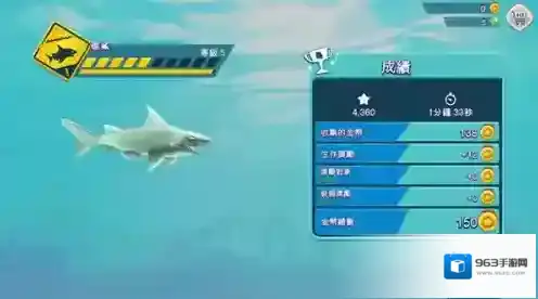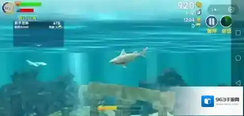 3、注意屏幕左上角的饥饿值,及时进食避免饿死。完成任务可获得金币,用来购买新鲨鱼或升级属性。