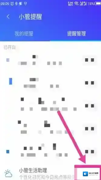 2、打开小管提醒后,在顶部选择右边的提醒管理。