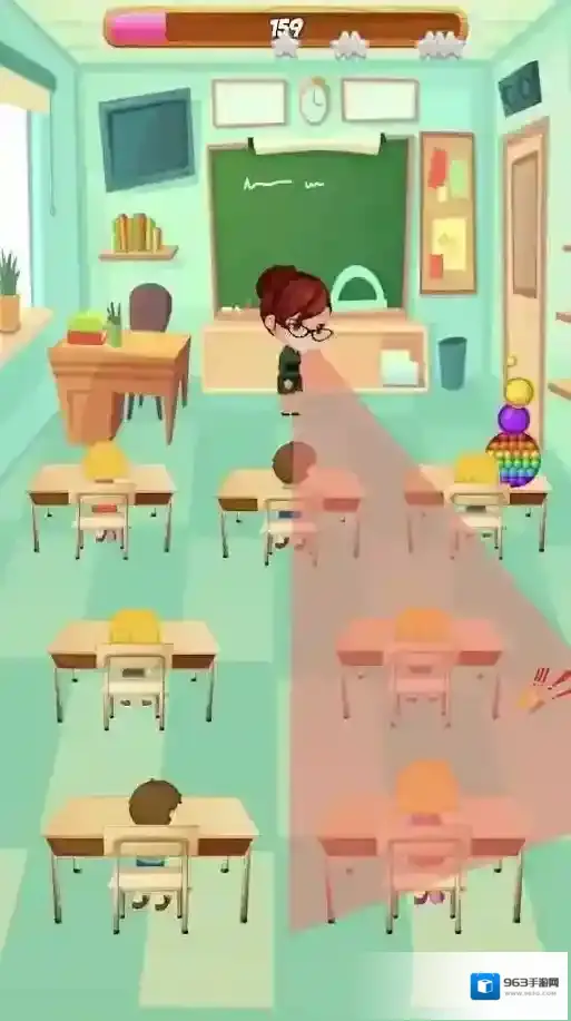 2、躲避系统:通过观察、预判与操作完成躲避,合理利用道具与环境优势躲避老师视线,连续完成高难度操作触发连击加成,获得额外金币与奖励,灵活应对不同类型的老师与场景。