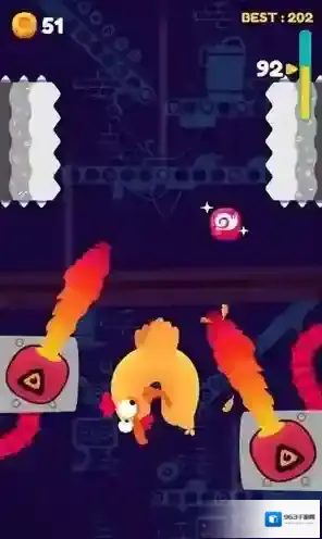 1、动态陷阱策略躲避:关卡融入齿轮切割、岩浆喷发、电网闪烁等动态障碍,猫咪追击速度随关卡递增且具备路径预判能力,需结合小鸟“短距飞翔+高空跳跃”的能力组合。
