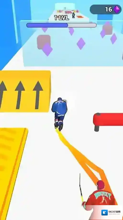 2、闯关时利用赛道上的蓝色加速带提升球速,当冰球进入加速状态后可直接撞碎砖墙类障碍物,同时观察守门员的跳跃预判,通过「假动作变向」绕开防守。