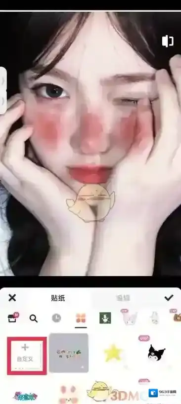 4、点击过贴纸之后就可以看到自定义了,直接点击即可。