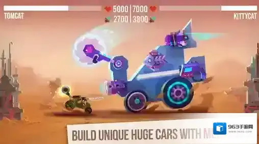 1、有丰富的道具可以让玩家去自由使用,各种各样的配件可以自由组装你的车辆。