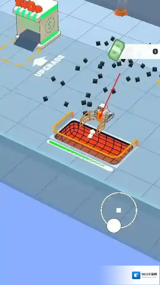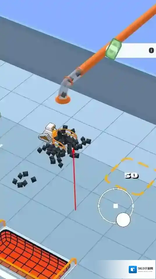 2、“清理垃圾”,在场景中收集分散垃圾,通过管道运输,积累金币(界面显示金额)。