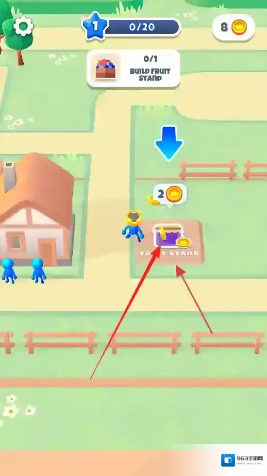 1、“建造设施”,消耗金币,点击建造水果摊、剑士营地等建筑,拓展小镇功能。