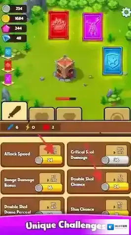 1、强化属性提升伤害:可通过强化属性对敌人造成更多伤害,属性的提升是永久生效的,玩家能根据战斗需求自由增加,这种持续成长的设定让塔的防御能力不断增强。