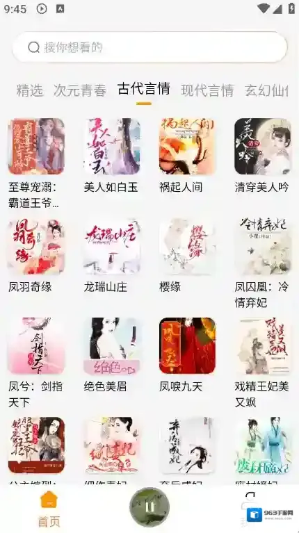 2、首页包含了很多的小说类型,包含了次元青春、古代言情以及玄幻仙侠等类型。