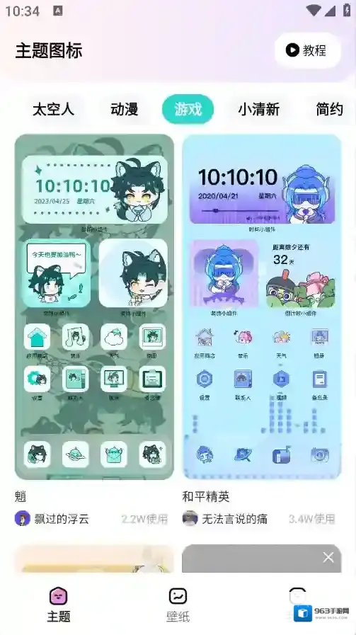 3、提供了丰富多样的主题资源,涵盖了可爱、动漫、经典、简约、时尚等多种风格。