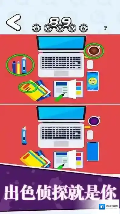 2、道具系统策略性强,放大镜可以查看细节,暂停时钟获得思考时间,提示箭头标记可疑区域。合理使用道具是突破高难度关卡的关键。