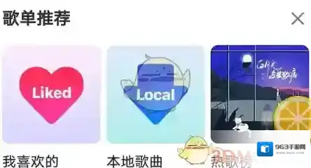 6、如果想要收听随机歌曲,那么点击最右侧的音乐图标,然后在歌单推荐里选择任意一个歌单即可,比如有本地歌曲、热歌榜等;