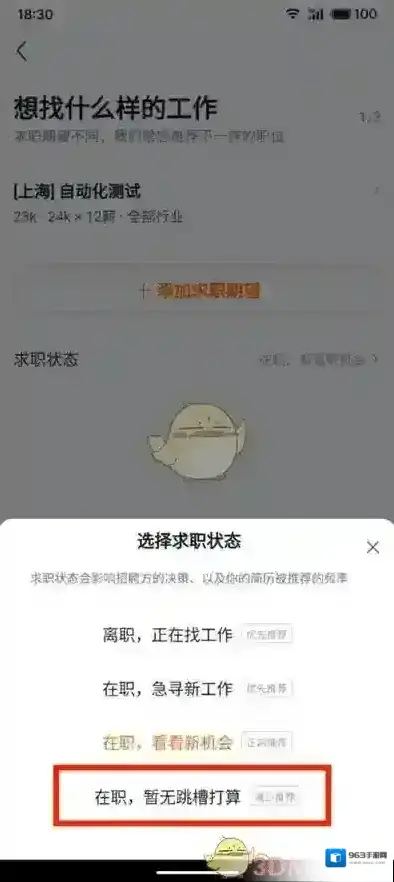 3、进入求职意向界面后,再点击求职状态选项;