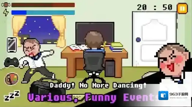 2、双数值管理系统:实时监控不断变化的压力值(玩游戏过久会升高)与饥饿值(时间推移会上升),玩家需精准平衡学习伪装与娱乐需求。