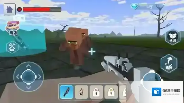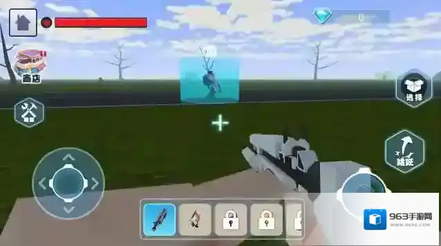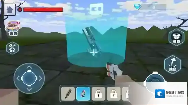 2、看到箭头指向的道具(武器箱),移动角色靠近,自动拾取新武器,切换使用,提升战斗能力。